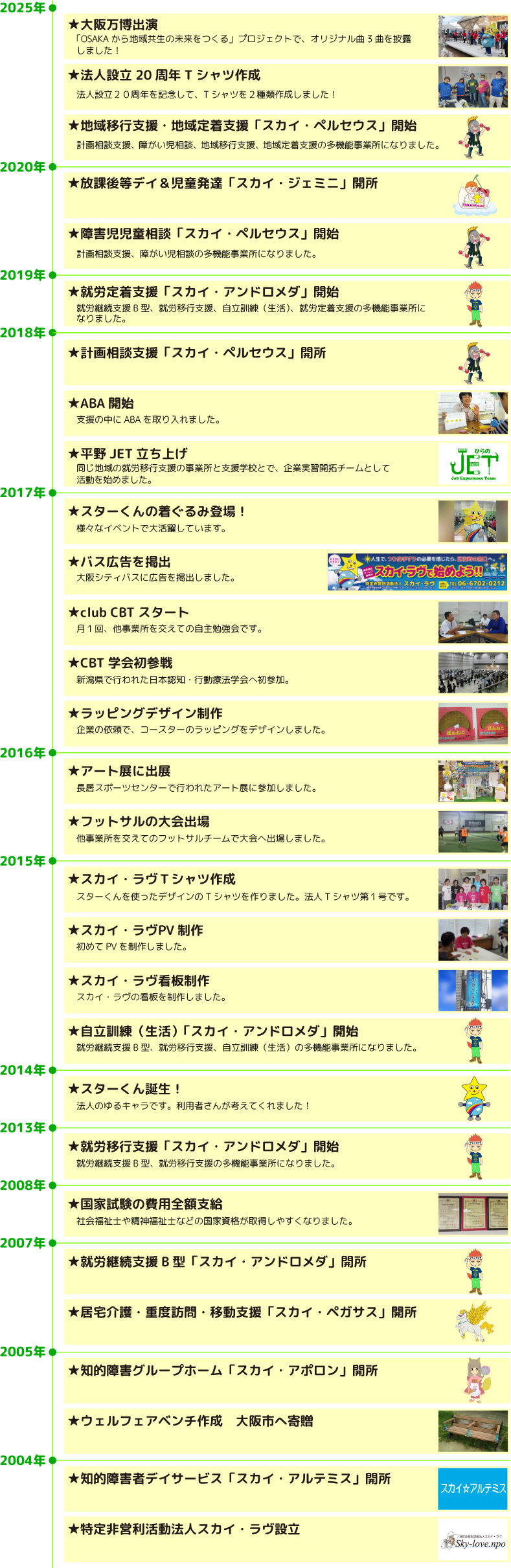 2004年 特定非営利活動法人スカイ・ラヴ設立 |